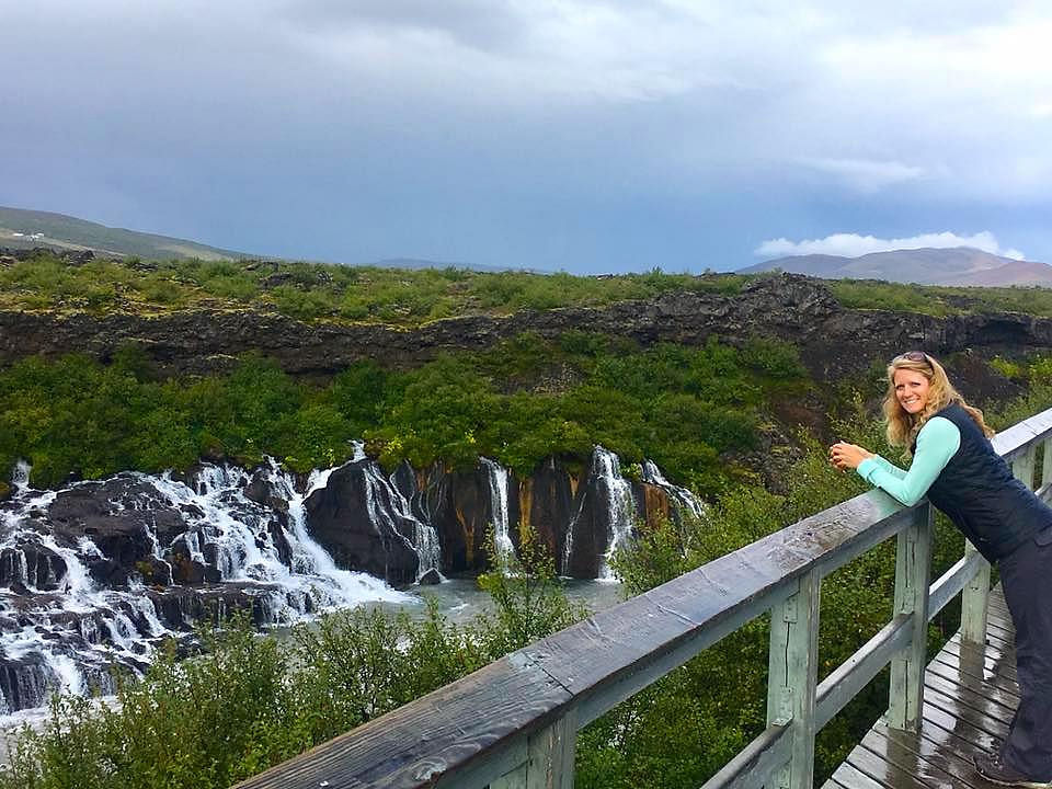 Our next stop is Hraunfossar, a beautiful waterfall coming straight from a lava field, and another waterfall just on the side called Barnafoss.
